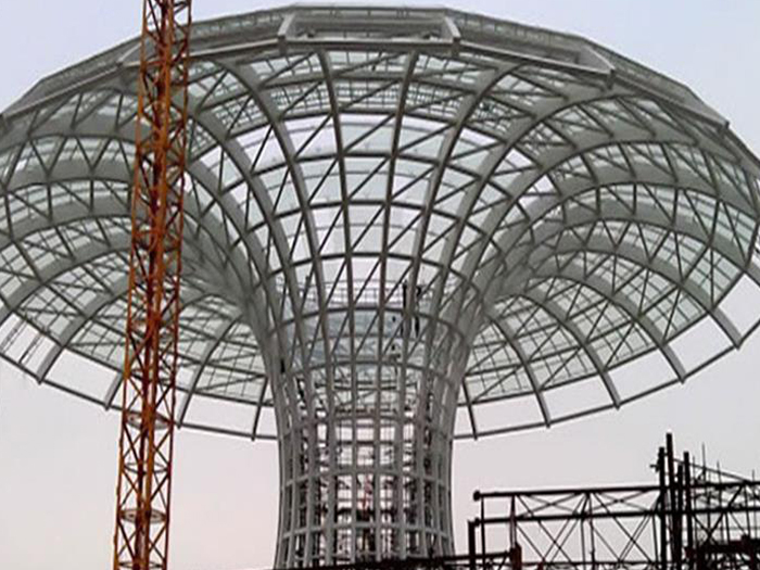二、球形网架结构因其结构新颖,受力合理,自重轻、用钢量低等优点。如大型体育场馆球形百色螺栓球网架、公共场馆球形网架、电厂百色螺栓球网架、水泥工业球形网架、仓储物流球形网架、百色干煤棚工业球形网架、百色收费站百色加油站球形网架、展览中心、影剧院、商场、航站楼、候车厅、工厂百色车间、仓库、电视塔等球形螺栓球节点网架。国内球形网架结构主要分为:百色焊接球节点网架及螺栓球节点网架两种。螺栓球节点网架其构件工厂内加工量较大,现场安装便捷,适用于现场工期紧,百色施工条件、用电量受制约,网架形状复杂、百色杆件定位困难的异形结构。螺栓球节点球形网架系统基本由百色杆件、螺栓球、支撑支座等组成。按照节点形式可分为交叉百色桁架体系、四角锥体系、三角锥体系等。支撑方式多为固定支座支撑。对于大面积、大跨度及有特殊受力或伸缩要求的网架结构可采用橡胶支座、滑移支座、球铰支座等支撑形式,以满足结构自身的受力稳定、均衡,便于内力释放等设计要求。